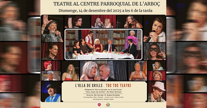 El diumenge 14 de desembre, a les 6 de la tarda, el Centre Parroquial de l'Arboç serà l'escenari de la representació de "L'Olla de Grills", una producció de TOC TOC Teatre (Llerona) que arriba al municipi, i s'emmarca dins dels actes de la 812a Fira de Santa Llúcia 2025.