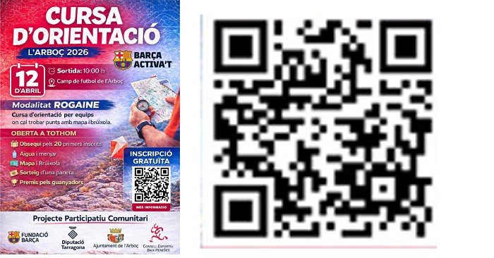 El diumenge 12 d'abril, l'Arboç acollirà una cursa d'orientació en modalitat Rogaine, amb sortida a les 10.00 h des del camp de futbol municipal. Aquesta modalitat consisteix a localitzar el màxim nombre de punts de control en un temps determinat utilitzant mapa i brúixola, posant a prova l'estratègia i el treball en equip.