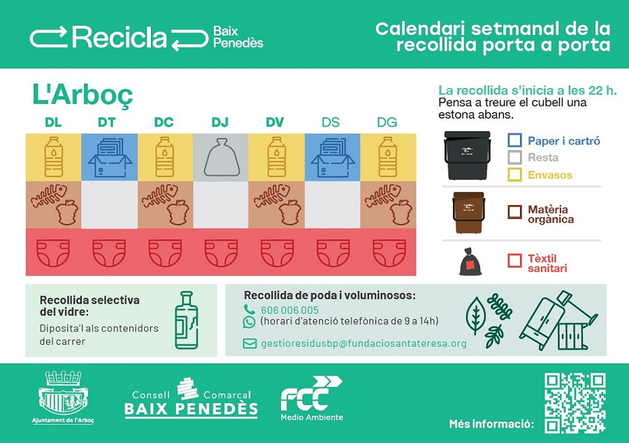 L´Arboç posa en marxa el nou calendari de recollida porta a porta amb un 74% de llars adherides